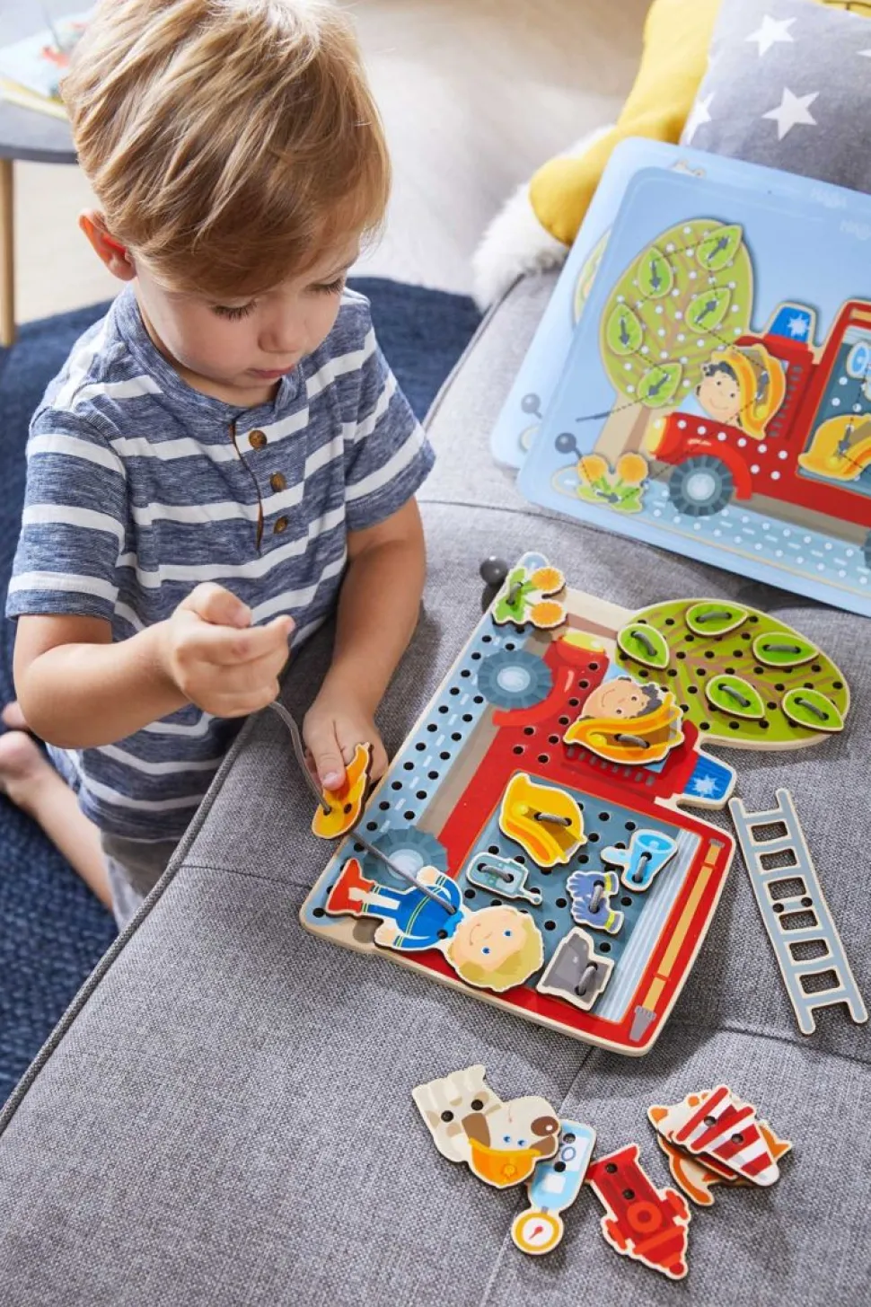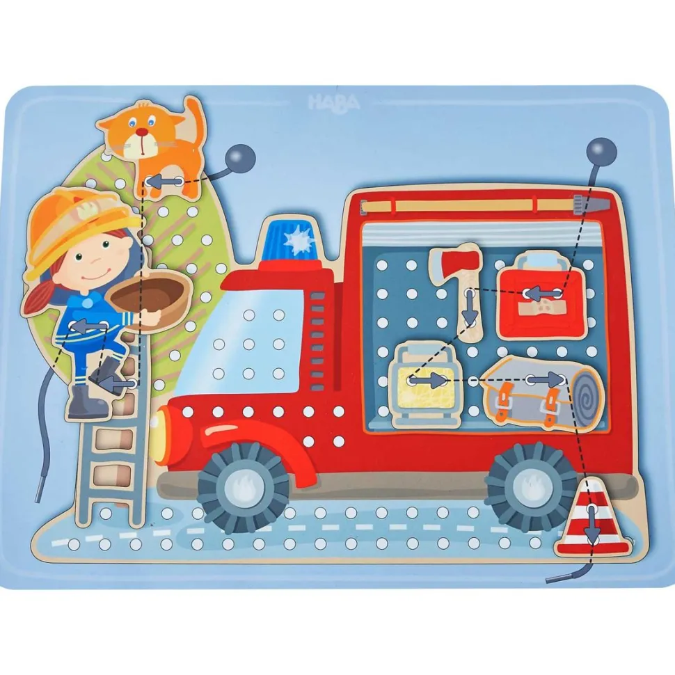 Threading Fun For Young Fire Brigade Fans! The Tiles Can Be Threaded Onto The Fire Engine, The Tree Or The Road As The Mood Takes Your Child Or To Match The Template. In This Way, An Exciting Scenario Can Be Created.