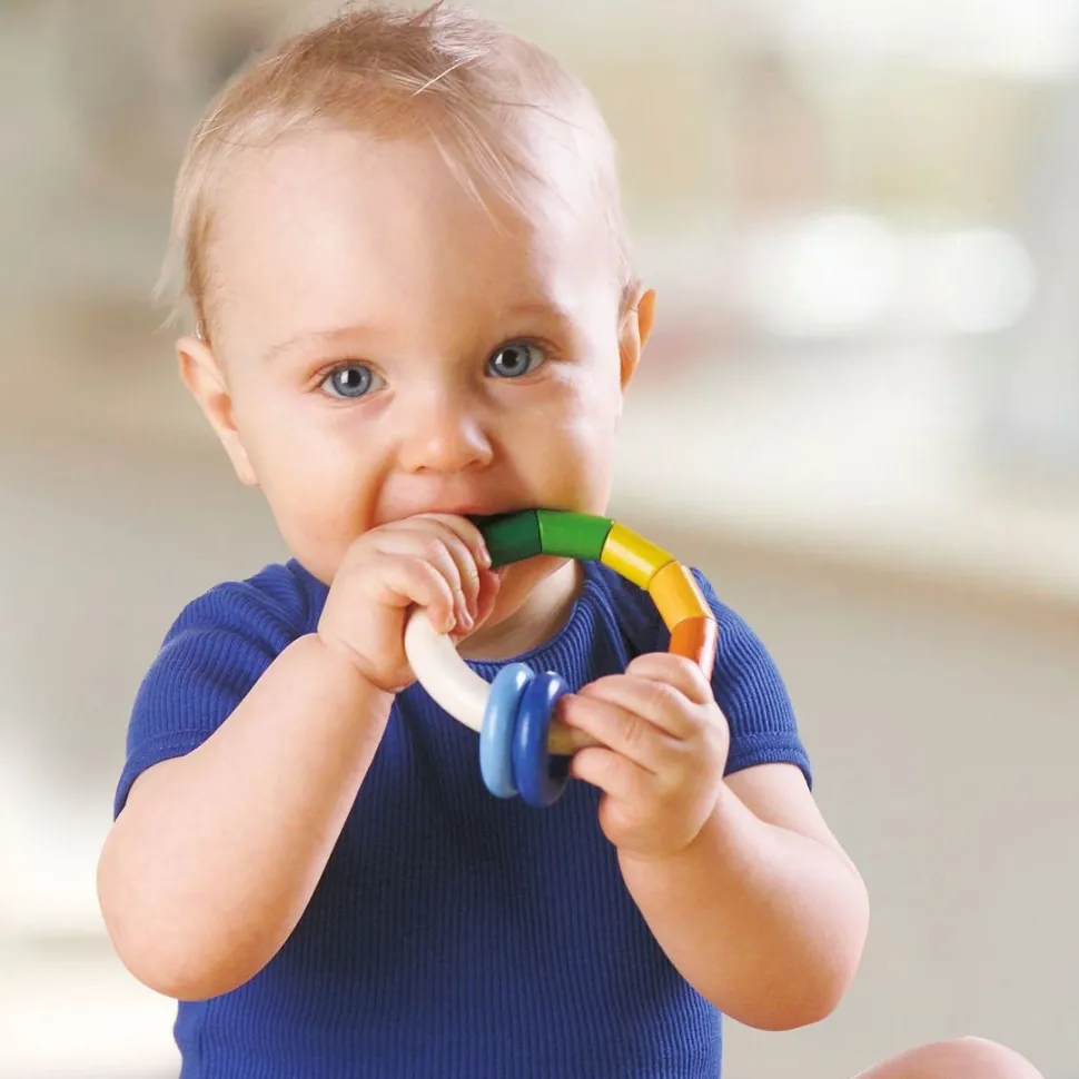 - The Hand-Crafted Kringelring Features A Pliable Ring Of Rainbow Colored, Beech Wood Beads Threaded On A Sturdy Elastic Band. The Smaller Plastic Rings Are Made Of Bpa-Free Plastic.
