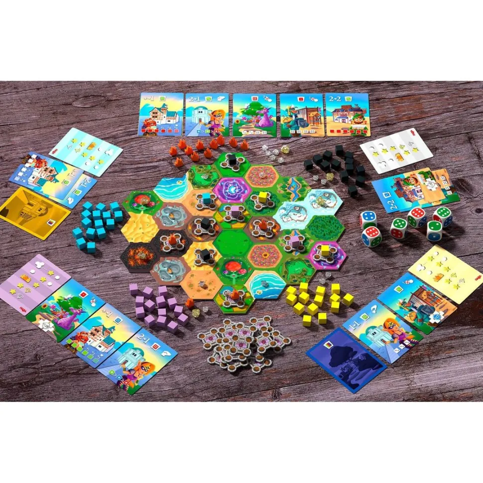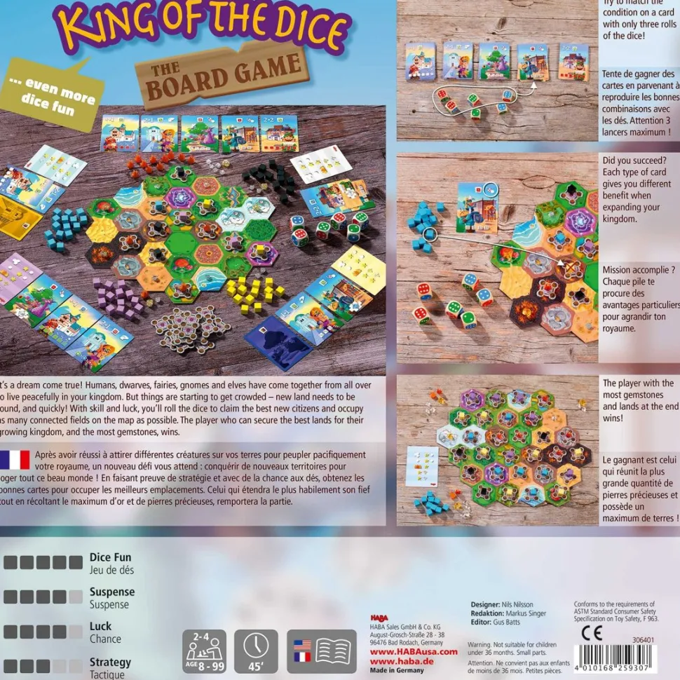 Humans, Dwarves, Fairies, Gnomes, And Elves Have Come Together From All Over To Live Peacefully In The Kingdom. But Things Are Starting To Get Crowded – New Lands Need To Be Found, And Quickly! With Skill And Luck, Players Roll The Dice To Claim The Best New Citizens And Occupy As Many Connected Spaces On The Map As Possible. The Player Who Can Secure The Best Territory For Their Growing Kingdom, And The Most Gemstones, Wins. A Kingly Strategic Dice And Board Game.