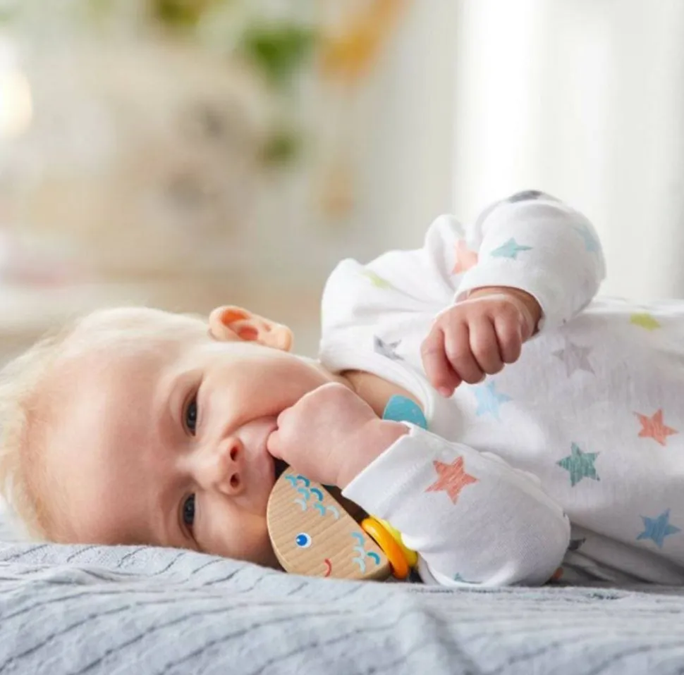 Hey There, What’S This Beautiful Sea Creature We Have Caught Here? This Wooden Clutching Toy Will Delight Babies With The Rattling Sounds It Makes.