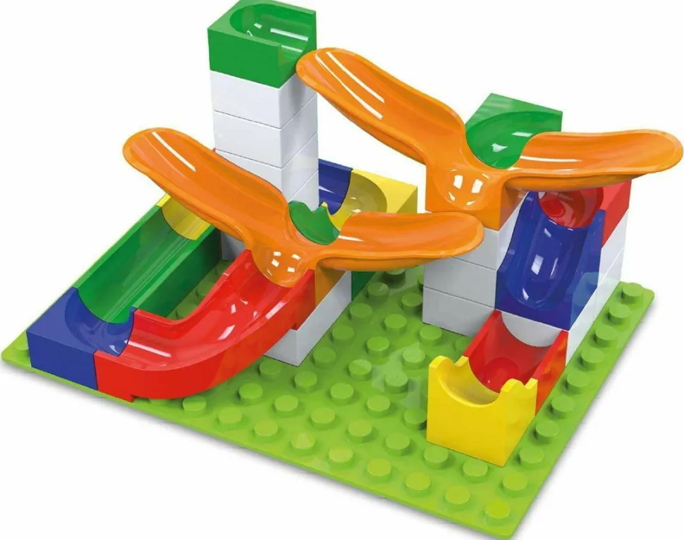 A Complete Stand Alone Set Or Can Be Used To Expand On Existing Run Elements. Includes Two Cradle Chutes, Which Means Marbles Can Shoot Off In Four Unpredictable Directions. Will Marble Drop From One Cradle To Next Or Will It Take An Unexpected Dive Off The Edge? Engineered So That With Enough Speed, The Ball Will Continue To Roll Through.